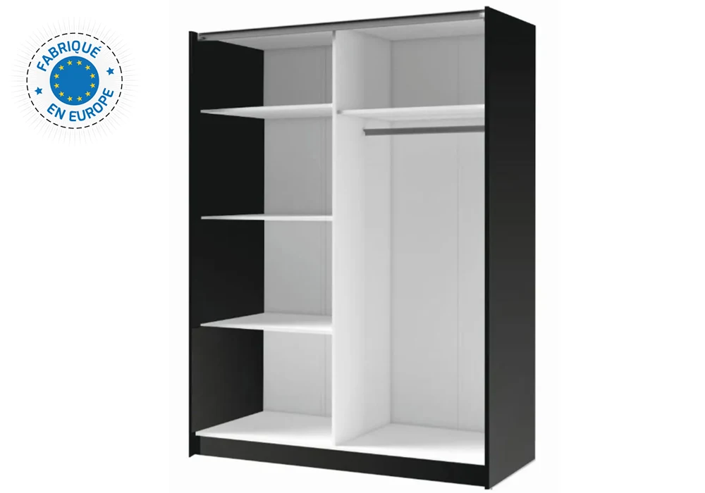Armoire 2 Portes Coulissantes avec Miroir Noir/Artisan
