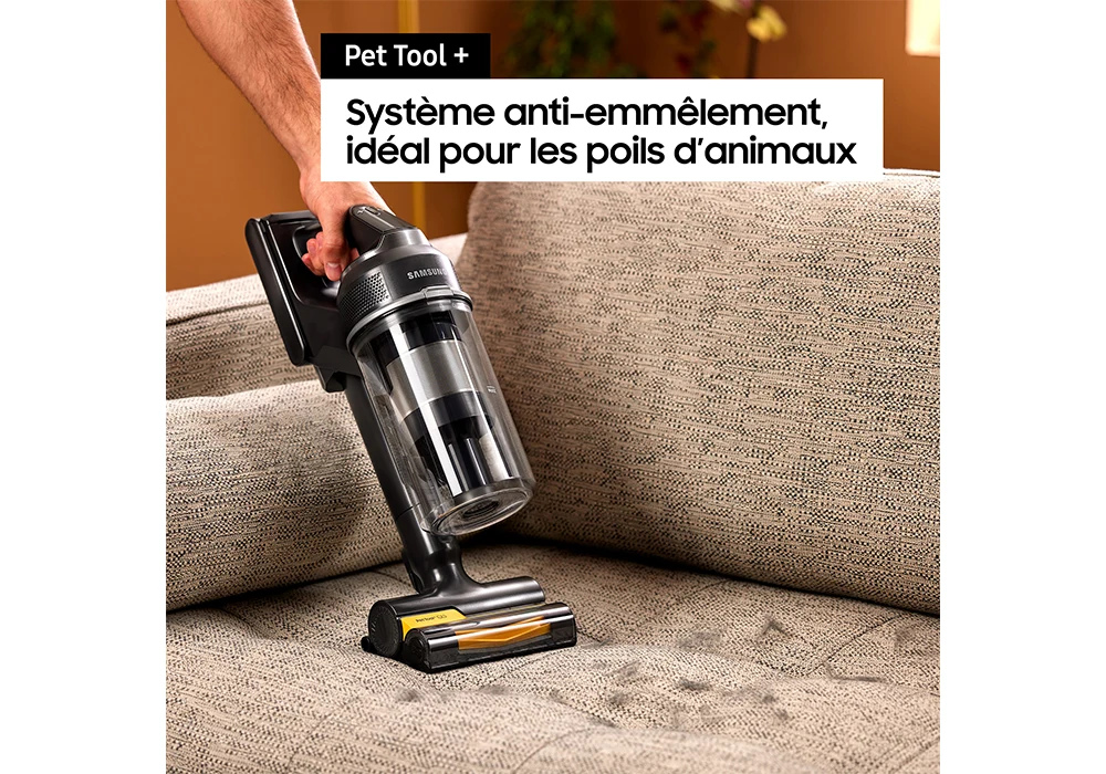 Aspirateur balai Samsung Bespoke Jet Plus Pet : un allié puissant pour un nettoyage complet de votre logement.
