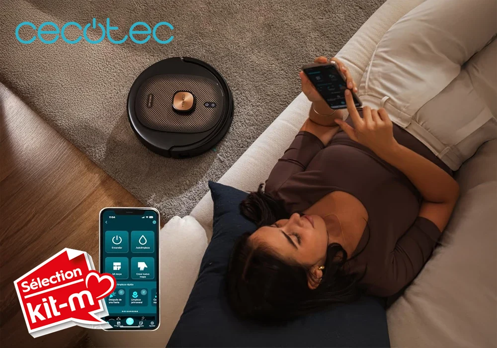 Via Cecotec App 3.0 + compatibilité assistants vocaux pour planification, cartographie et réglages à distance.