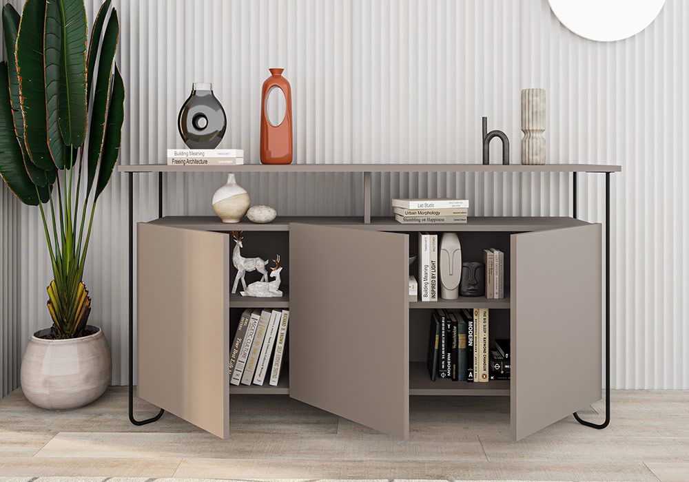 La silhouette du bahut Dilly lui confère une certaine légèreté et un charme évident. Ce meuble donnera un souffle nouveau à votre intérieur. Votre salle de repas s’en verra non seulement embellie mais en plus elle bénéficiera d’un espace de rangement pratique, ainsi, vous pourrez ranger vos couverts et vos accessoires derrière les 3 portes de ce buffet.
