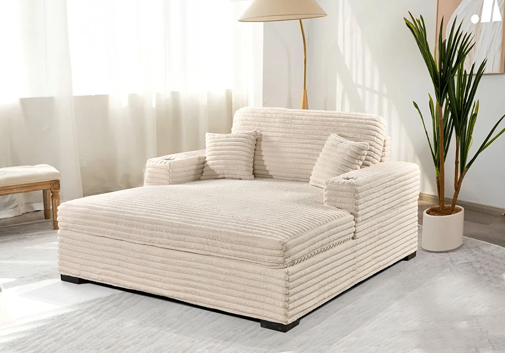Le canapé méridienne Merry allie élégance contemporaine et confort exceptionnel. Sa structure en panneau de particules assure une solidité durable, tandis que son assise en mousse polyuréthane offre un soutien moelleux et accueillant. Le revêtement en tissu microfibre côtelé épais séduit par sa douceur et sa résistance, disponible en noir, gris ou beige pour s’adapter à tous les styles d’intérieur.