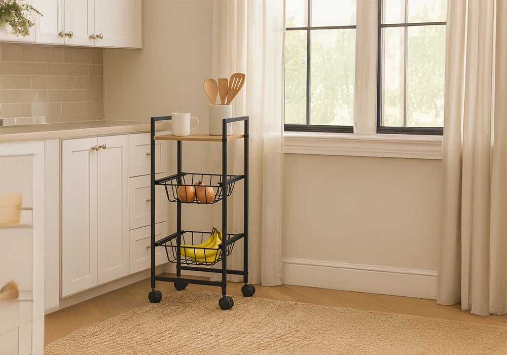 Parfaite comme desserte de cuisine, meuble d’appoint ou support pour objets déco, Cyril conjugue fonctionnalité, design épuré et esprit pratique. Son format compact permet une intégration facile dans les petits espaces, tout en offrant une capacité de rangement généreuse.
