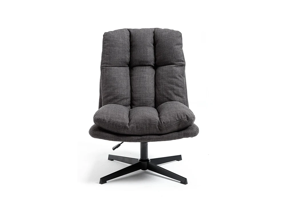 Le piétement en métal noir apporte une note industrielle élégante, tout en assurant une excellente durabilité. Le mécanisme pivotant offre une grande liberté de mouvement, parfait pour un usage quotidien confortable.