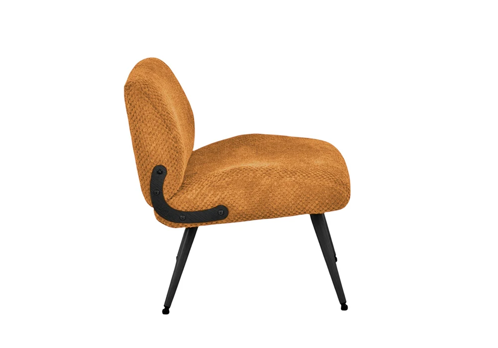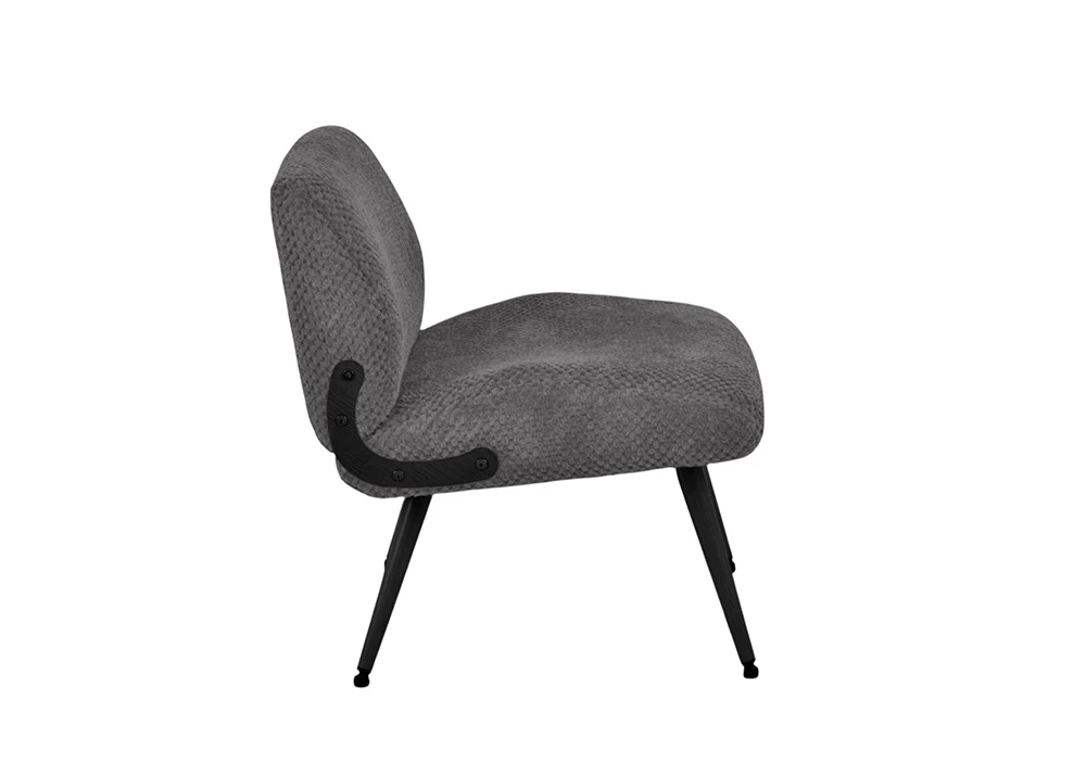 Son piétement en métal noir apporte une note industrielle élégante tout en garantissant une excellente solidité. Ce contraste entre métal et tissu donne au fauteuil Delila un style unique et tendance.