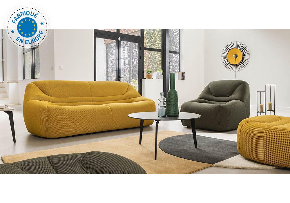 Découvrez les éléments de salon contemporain de fabrication européenne, le canapé 3 places MAXI ,canapé 3 et 2 places , fauteuil et pouf de la collection jolydesign.