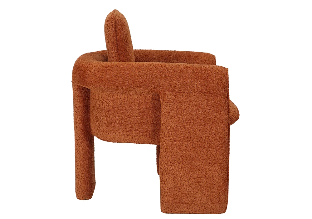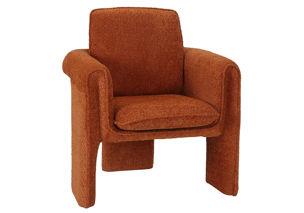 Ses 3 pieds hauts lui confèrent une allure aérienne, contrebalancée par sa structure carrée affirmée. Avec ses accoudoirs enveloppants et son dossier doté d’un coussin assorti rebondi, le fauteuil garantit un confort optimal et un maintien renforcé.