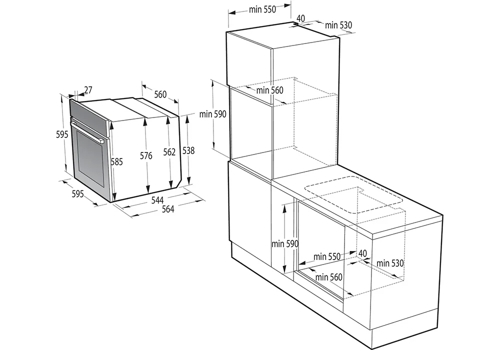 - Encastrement : niche standard 56x55x59 cm.