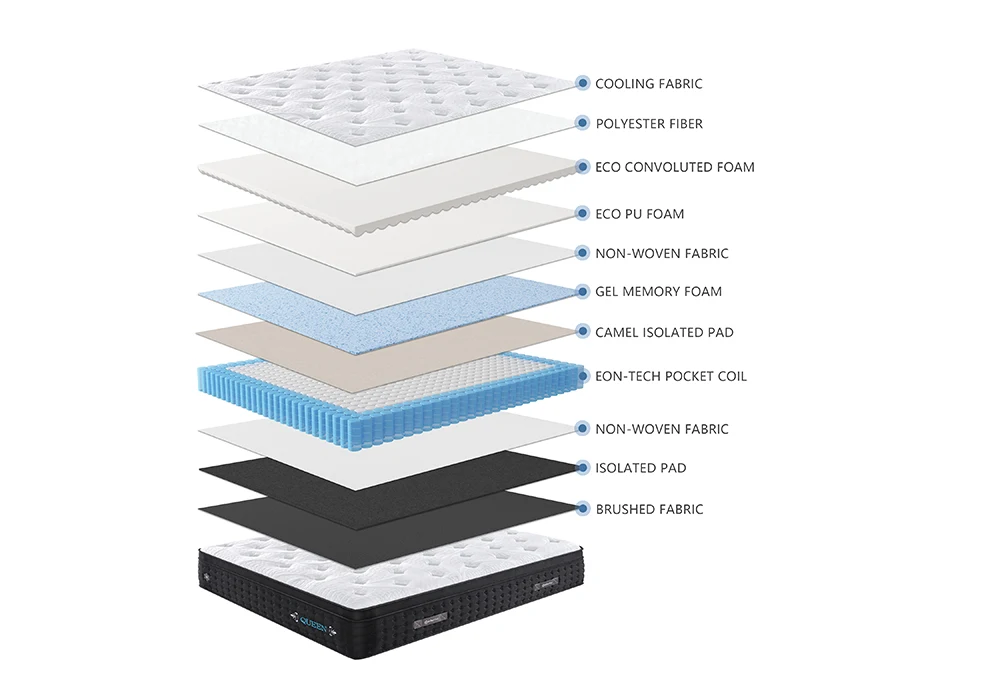 La mousse mémoire de forme enrichie en gel apporte un accueil moelleux, tout en régulant la température et en épousant les courbes du corps sans affaissement. L’ensemble est enveloppé dans un tissu « Cooling Fabric » ultra-respirant, favorisant une fraîcheur constante et une hygiène parfaite tout au long des saisons.
