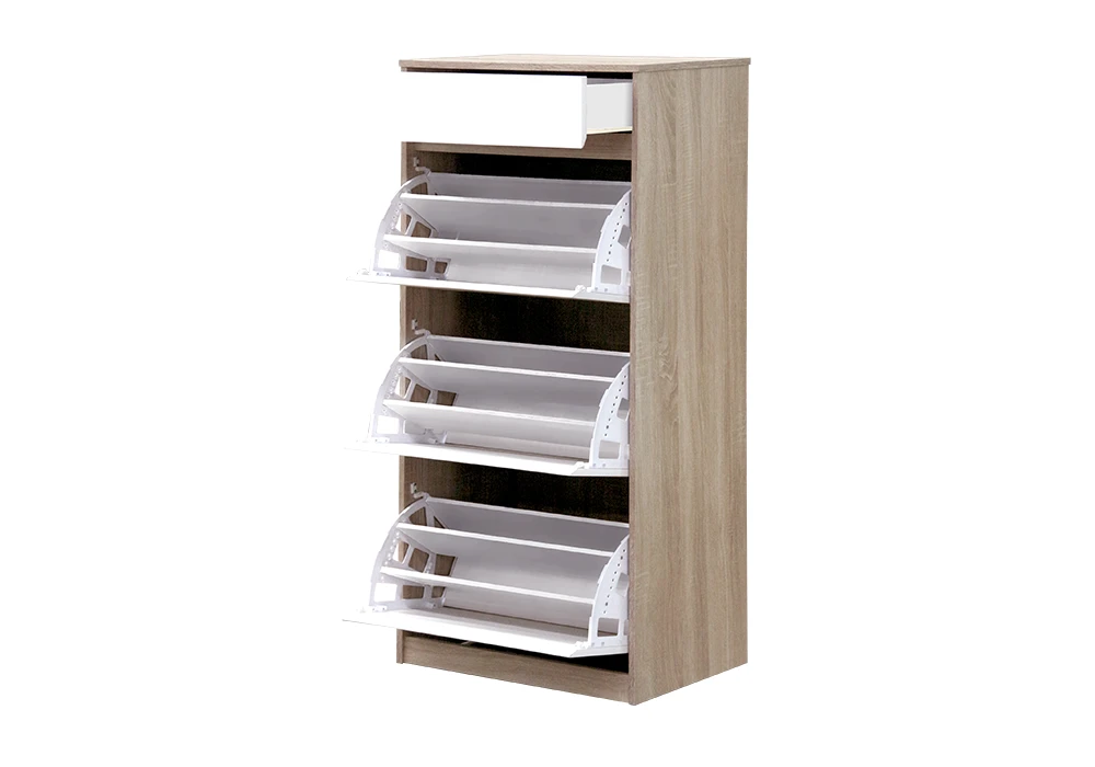 Avec son tiroir spacieux et ses 3 abattants, il offre un vaste espace de rangement pour organiser toutes vos chaussures en un clin d’œil. Parfait pour maintenir votre espace bien ordonné tout en ajoutant une note esthétique, ce meuble à chaussures est l’accessoire indispensable pour un hall d’entrée bien aménagé et accueillant.