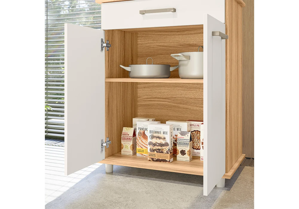 Fabriqué en panneau de particules robuste, ce meuble assure une durabilité et une stabilité remarquables. Son coloris apporte une touche de fraîcheur et de modernité, s’intégrant parfaitement dans tous les styles de cuisine.