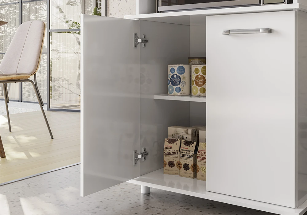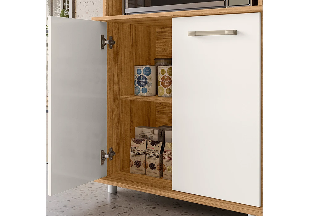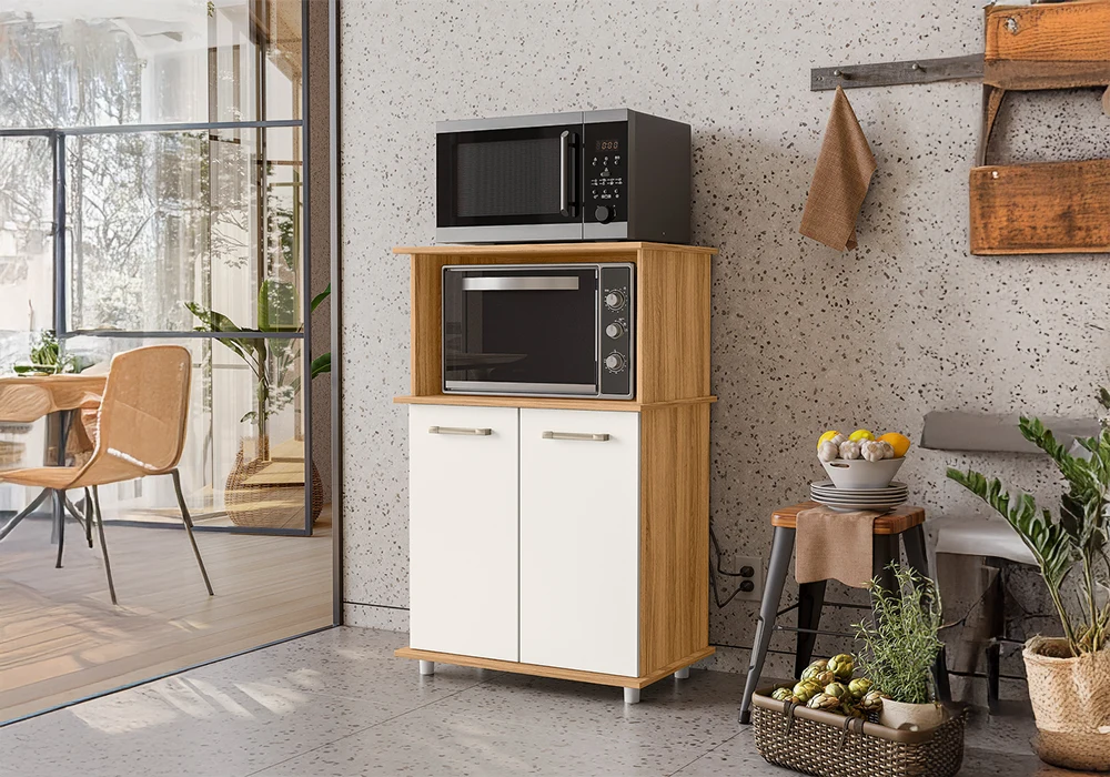 Les 2 portes offrent un espace de rangement supplémentaire, idéal pour garder vos ustensiles de cuisine ou vos ingrédients à portée de main. Ce meuble est spécialement conçu pour accueillir votre four micro-ondes et peut également servir de support pour un four standard, maximisant ainsi l’utilisation de votre espace.