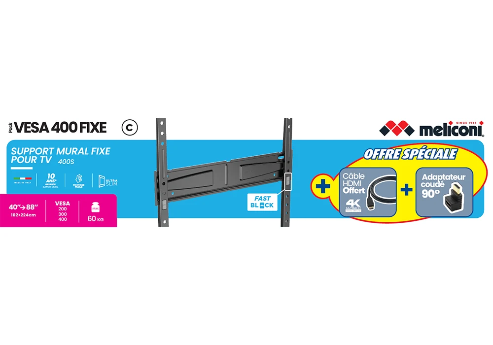 Pack Support Mural + Câble HDMI Pack VESA 400 FIXE Meliconi (920022)