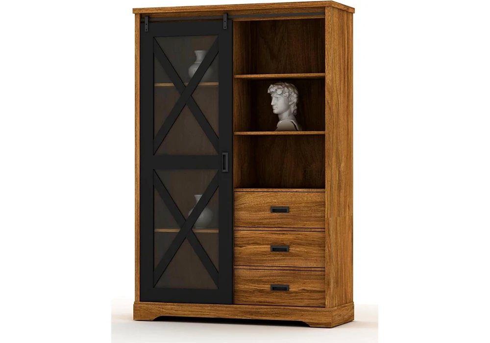 Équipée d’1 porte et de 3 tiroirs, cette vitrine permet de mettre en valeur vos objets décoratifs, votre vaisselle ou vos collections préférées. L’association des teintes confère à ce meuble un charme unique, parfait pour sublimer votre décoration intérieure.